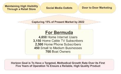 There is a great opportunity to improve wireless network offerings in the Caribbean region and especially in Bermuda. Current proposals in these regions can be very slow and unreliable. Most competitors can only offer speeds of 10 Mbps. A fast and reliable Internet has become important for many people and businesses. Tourism and cruise ships provide an additional opportunity for wireless Internet providers. In 2016 more than six hundred thousand tourists visited Bermuda. Horizon plans to offer services for tourists and cruise ship ports.
